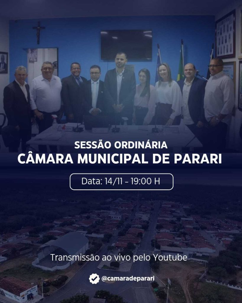 A Câmara Municipal de Parari convida toda a população para participar da Sessão Ordinária nesta…