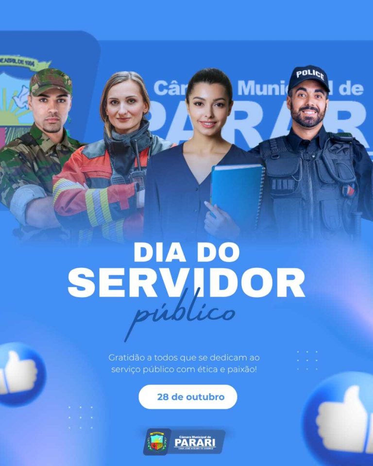 A Câmara Municipal de Parari parabeniza todos os servidores que, com zelo e empenho, contribuem diariamente para o desenvolvimento do nosso município. 👏